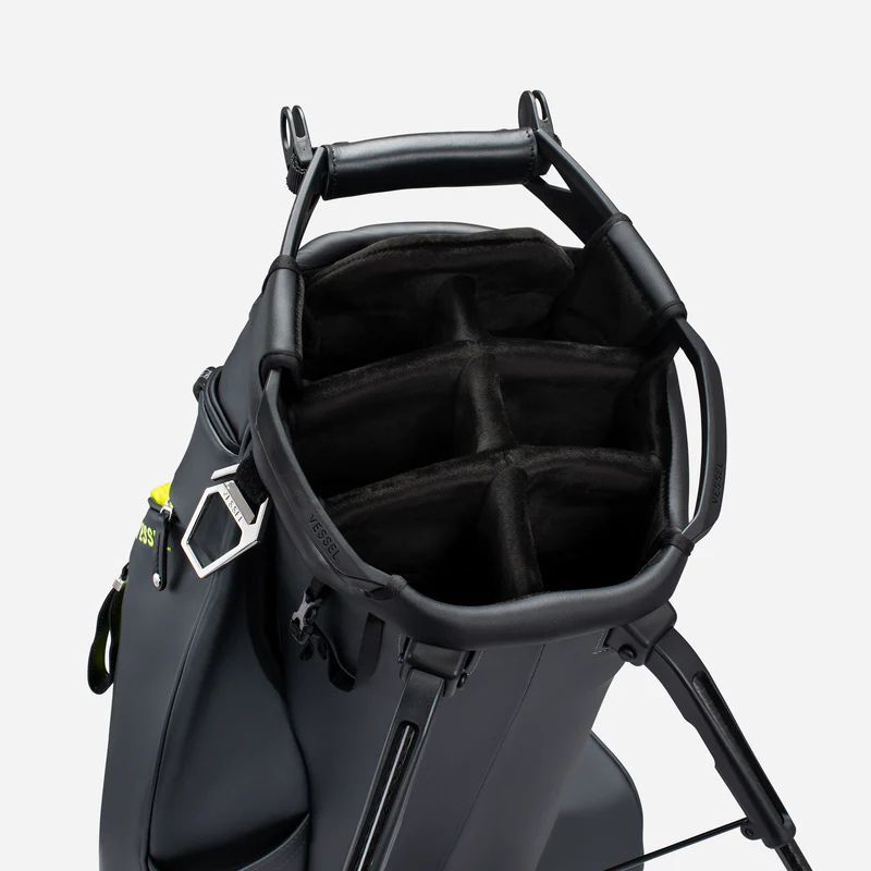 Experience the pinnacle of luxury performance with the Player V Pro. Meticulously crafted for the highest level of functionality and on-course convenience. The newly designed 7-and-14 way tops offer best in class club organization with dedicated putter storage and offset club dividers for optimal club viewing and retrieval. The Player V Pro utilizes VESSEL’s patented technologies (Equilibrium Double Strap and Rotator Base) for maximum balance and superior stability. Intentionally placed high strap-attachment points promote further balance and eliminate club fallout while the bag is being carried. A key feature is the cart strap pass-through for added protection when used on a cart or trolley. With too many fine details to name, you’ll be pleasantly surprised to discover that every detail, every element, of the Player V Pro is thoughtfully crafted for an uncompromised game.