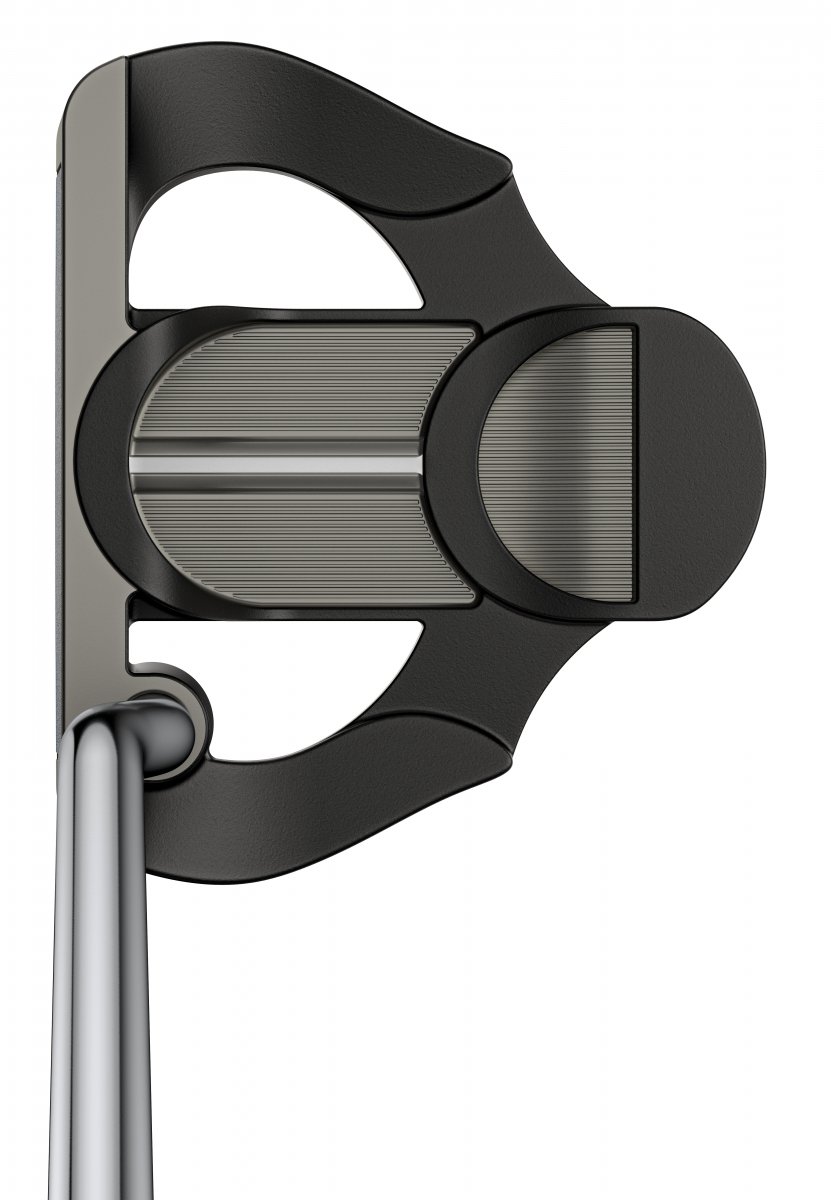 The putters’ aesthetics can also aid performance. At address, subtle colour blocking between the black-nickel top rail and matte-black PVD back portion draw focus to the front for easier alignment.